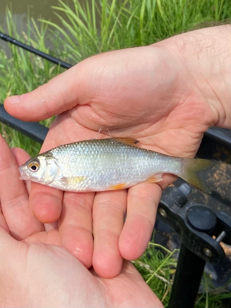 And (because it was a charmed day), Phil was catching a little roach as I walked past, so I could see the life which was underwater and which is only visible to someone on the bank in the concentric rings of ripples as a fish surfaces invisibly to feed.