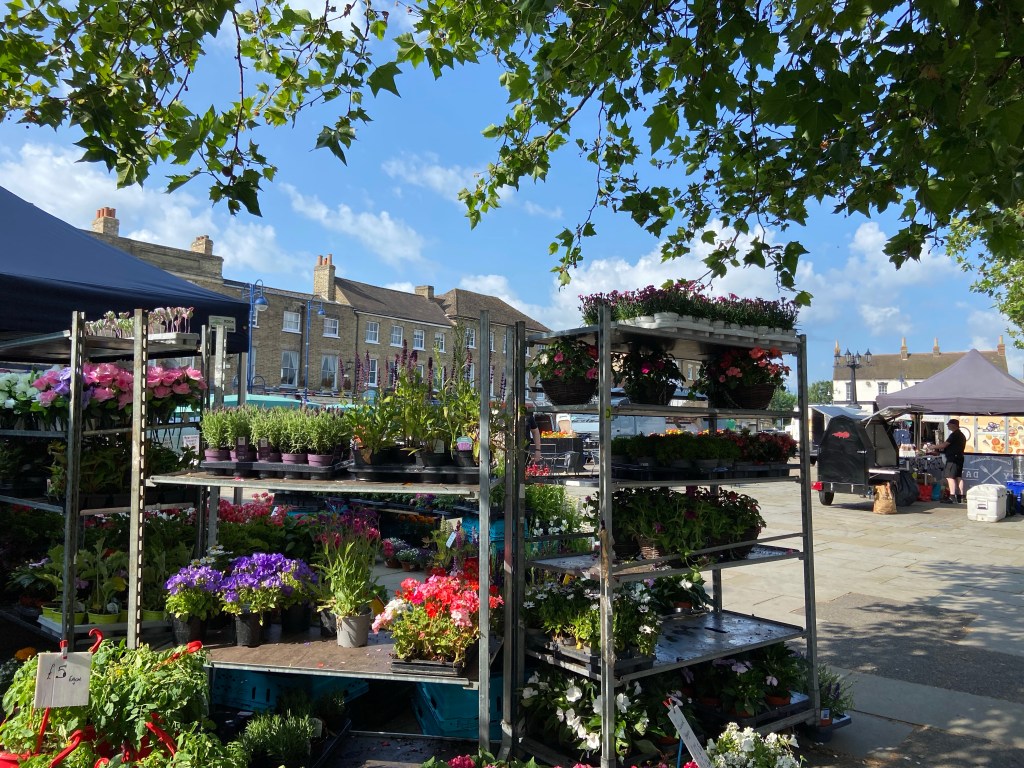 The bus worked like a charm and I arrived back in St Neots on market day, the square filled with stalls selling plants and pasties and handbags and — mobility scooters?