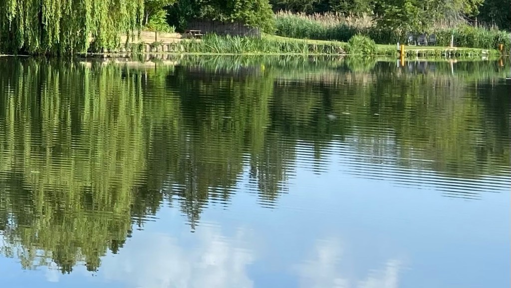 I stopped to watch the dragonflies and fish in the water — until I got bitten by a horsefly, and my romantic view of Lammas Meadow vanished in one snap of the tiny scything jaws. I hurried on, but could not stop myself pausing to take another irresistible photograph, this time of horizontal ripples on the water