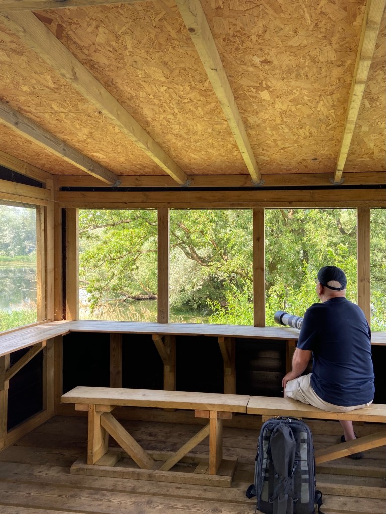 I had walked two weeks to see a kingfisher without luck. I know it takes a lot of patient sitting and waiting, and that walking a river or canal, sometimes with attention of necessity paid to the path rather than the water, is not conducive to wildlife spotting, but I had hoped. I would have loved to have stayed at the hide for longer, and to have seen the flash of blue again, but I had a way to go, so I regretfully left Dave, looking towards the kingfisher’s tree, and moved on.