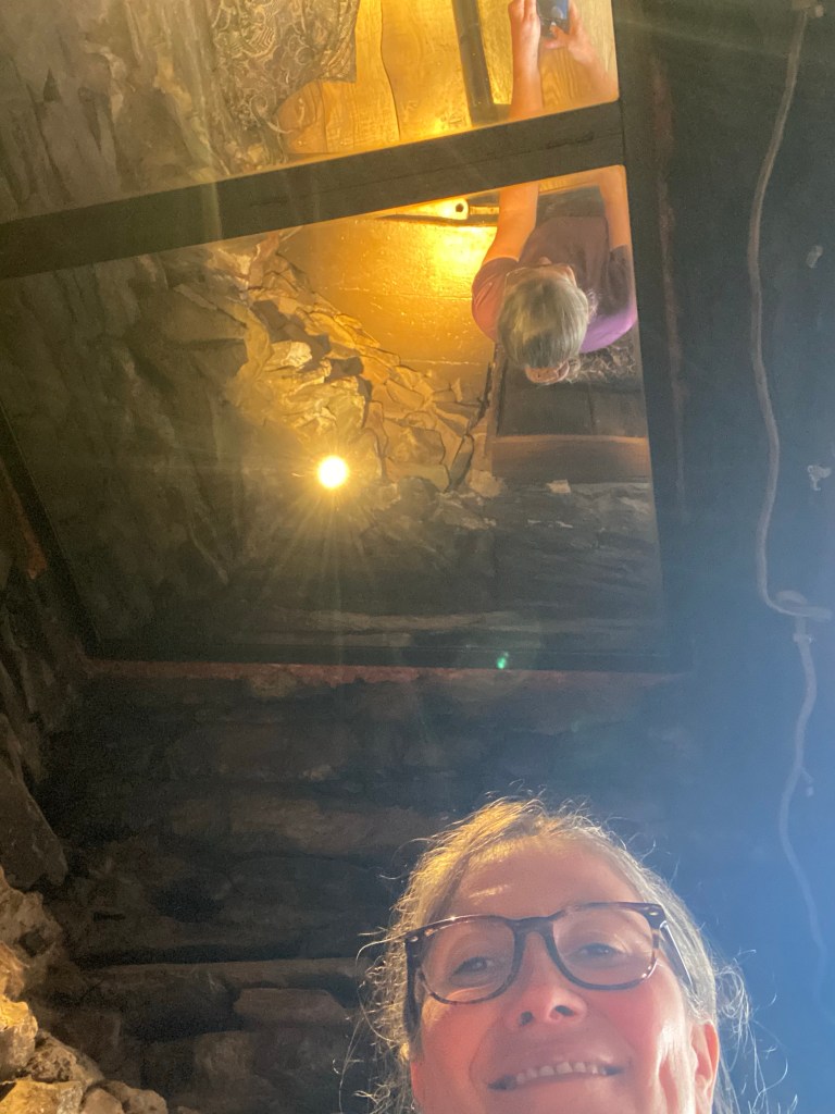 They’d remembered because as it turned out, the ceiling of the inglenook is a mirror, and we discovered that Stephen had been using it to look at everyone’s cards! This was one of two particularly fine mirrors I encountered today.