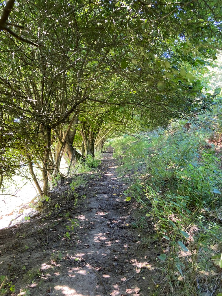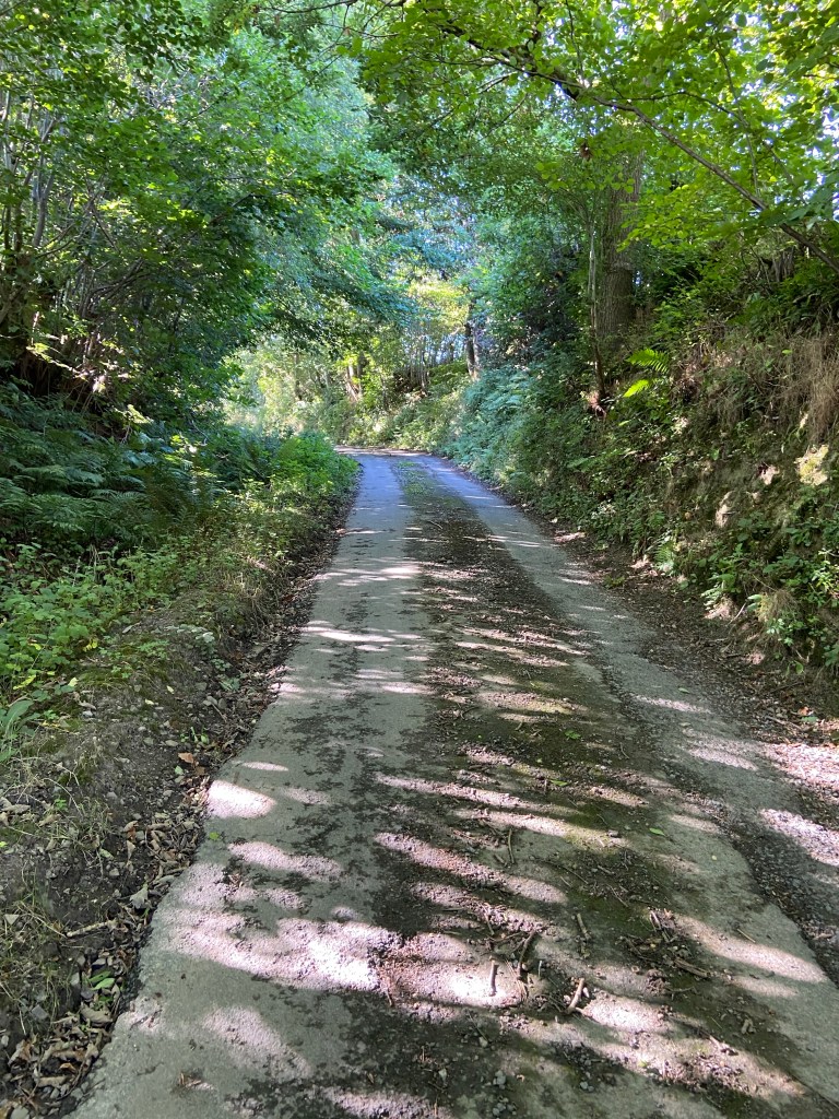 I was grateful for every patch of shade — although the toll to be paid for one shaded path was one lash from a stinging nettle in an overgrown patch leading up to it. I went very slowly, using my poles as best I could to move them out of the way. It was too hot to contemplate trousers instead of shorts and I wondered whether the former were to have a free ride in my rucksack.