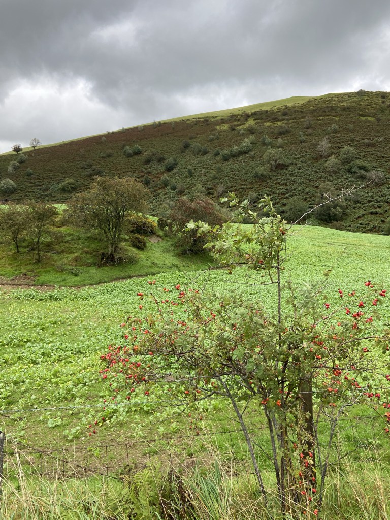 The skies were dark and fairly lowering, but I appreciated the contours of the landscape anyway, a bit sorry that I wasn’t walking on the ridges, but also somewhat relieved, as I imagined that after the rain we’d had, I’d have been regretting not having worn my boots if I had much more off-road path.