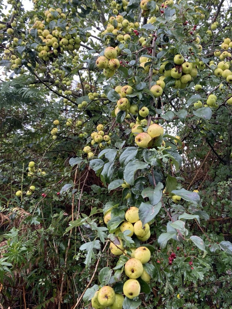 There had been a visible change in the hedgerows even in the couple of weeks since I was last walking here. The blackberries were long gone, rotted in the rain, and the autumn colours are noticeably further advanced. Wayside apple trees were bowed down with the weight of their fruit.