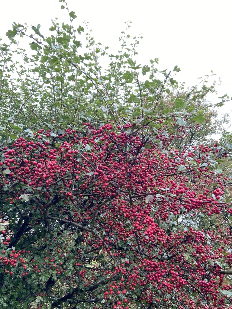 Some hawthorns wore their full cargo of berries on already almost bare branches