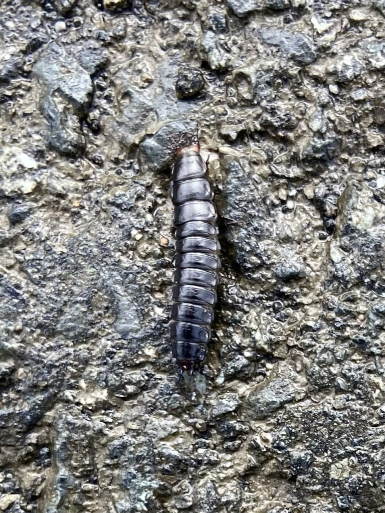1. I don’t know! It seemed chitinous and I thought larvae were all soft … but on this Australian site there’s a larva that looks exactly like what I saw. So probably some kind of ground beetle or rove beetle larva. Thanks, Gill!