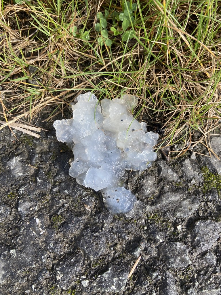 Further on the same stretch of track there was a real mystery. A patch of the strange jelly-like substance that sometimes appears on the ground. I’d always thought it was a kind of slime mould — fascinating outliers on the tree of life, being neither animal, vegetable or mineral — but on looking it up it appears that no one yet knows what it is, although there are theories.