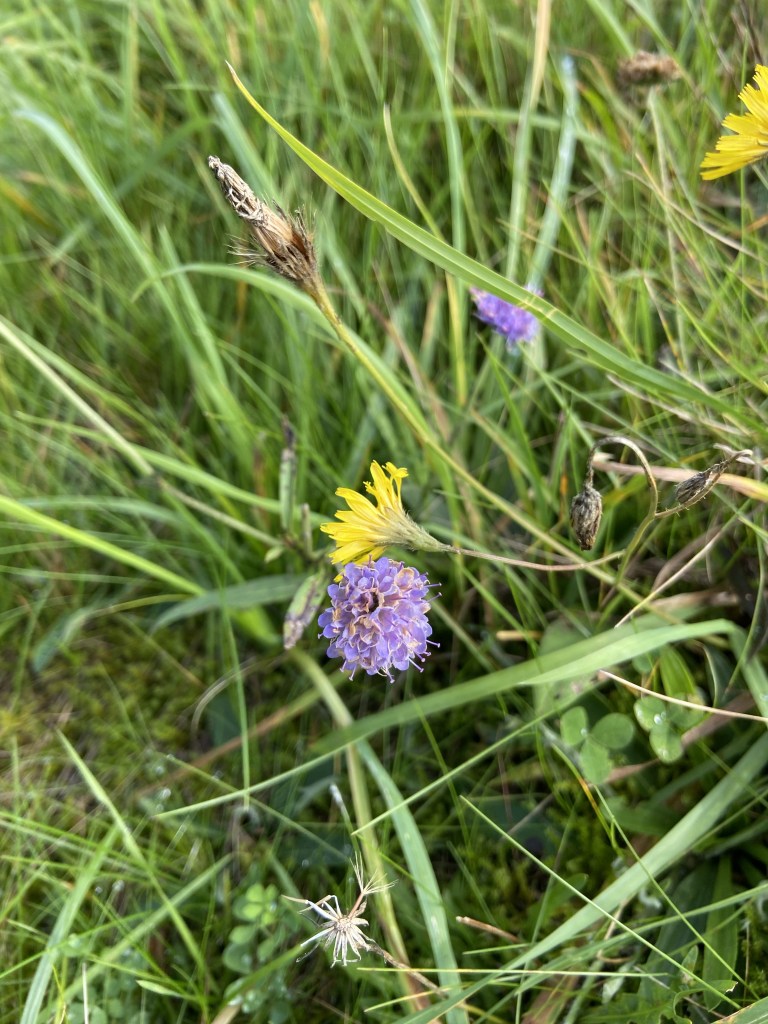 The light turned the devil’s-bit scabious into tiny jewels in the verges,