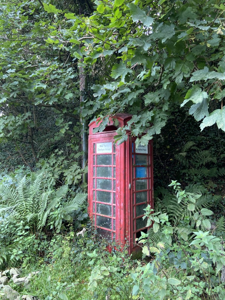 My eyes found correspondences: the faded red of a dilapidated telephone box drew my eyes, as did the ripening holly berries; it is three days after the equinox, and we are half way from the summer solstice to midwinter.