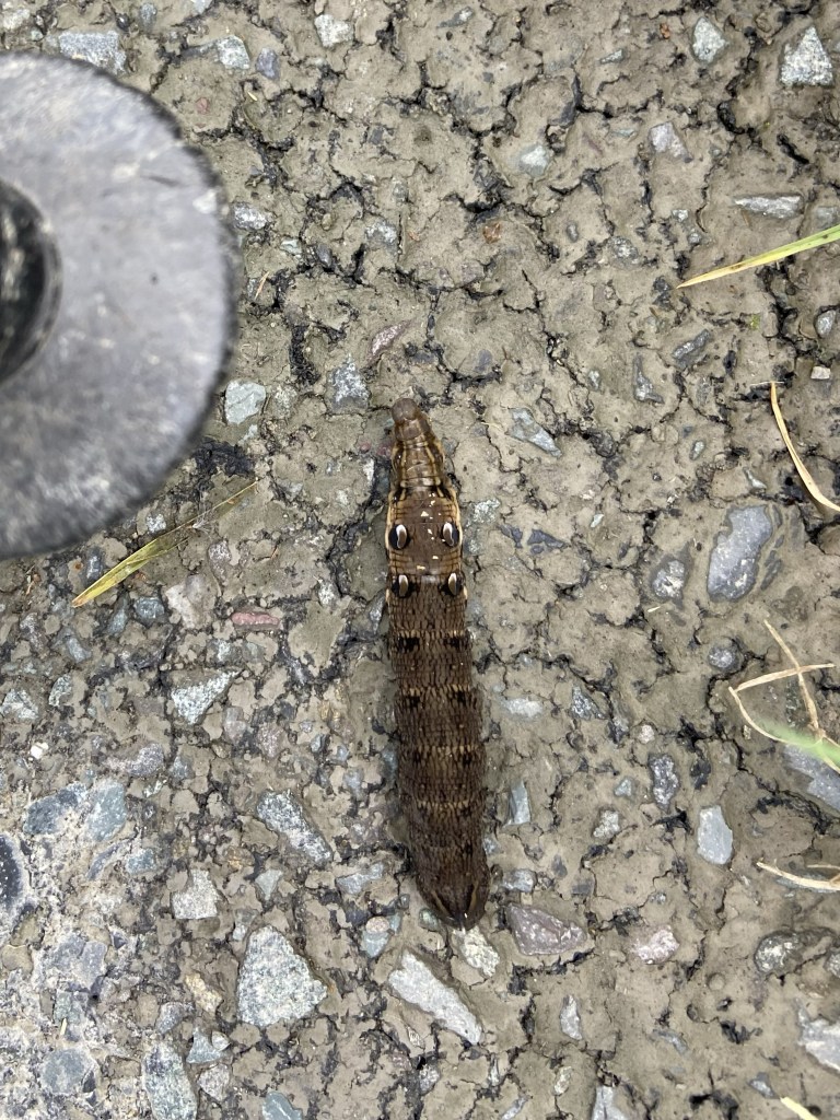 I might not have seen a warty toad crawling along the road (always a privilege to encounter and quite distinct from smooth-skinned frogs), but I did enjoy one final special sight before I descended to the little town of Llanidloes: one of the spectacular super-sized caterpillars of the elephant hawk moth.