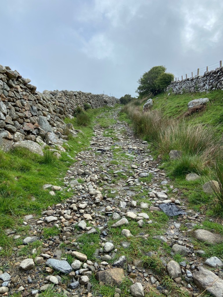 The Wales Coast Path here follows an ancient track over the hills which must have been trodden for centuries, and walking through the the thin mist up here, there was nothing except a half-buried piece of black plastic perhaps ripped from a silage bale to suggest that I hadn’t been transported back in time to a harder, harsher age.