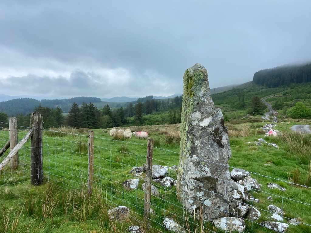 Jane recommended that I go and see the standing stones and Bob-Ian that I take a shortcut leaving down to the blue lake; I certainly had enough energy to take the detour to the stones: rough-hewn rocky monuments connecting us to our ancestors in the far past with whom we shared this landscape.