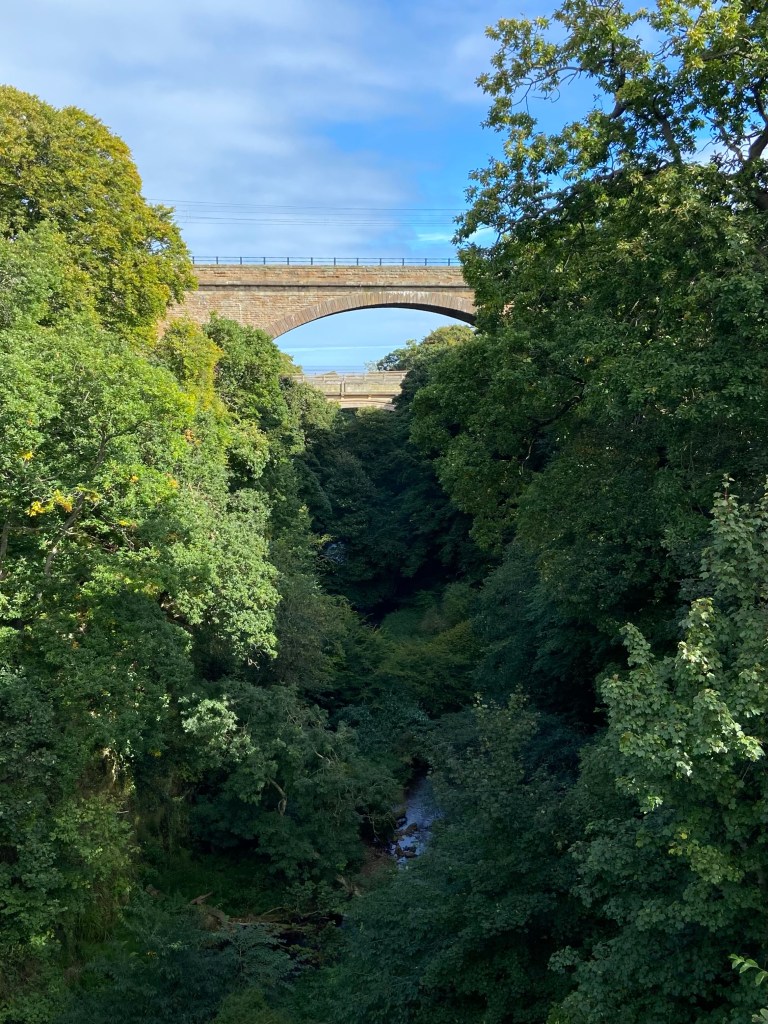 The little dingle turned into a deep gorge, spanned by road and rail bridges.