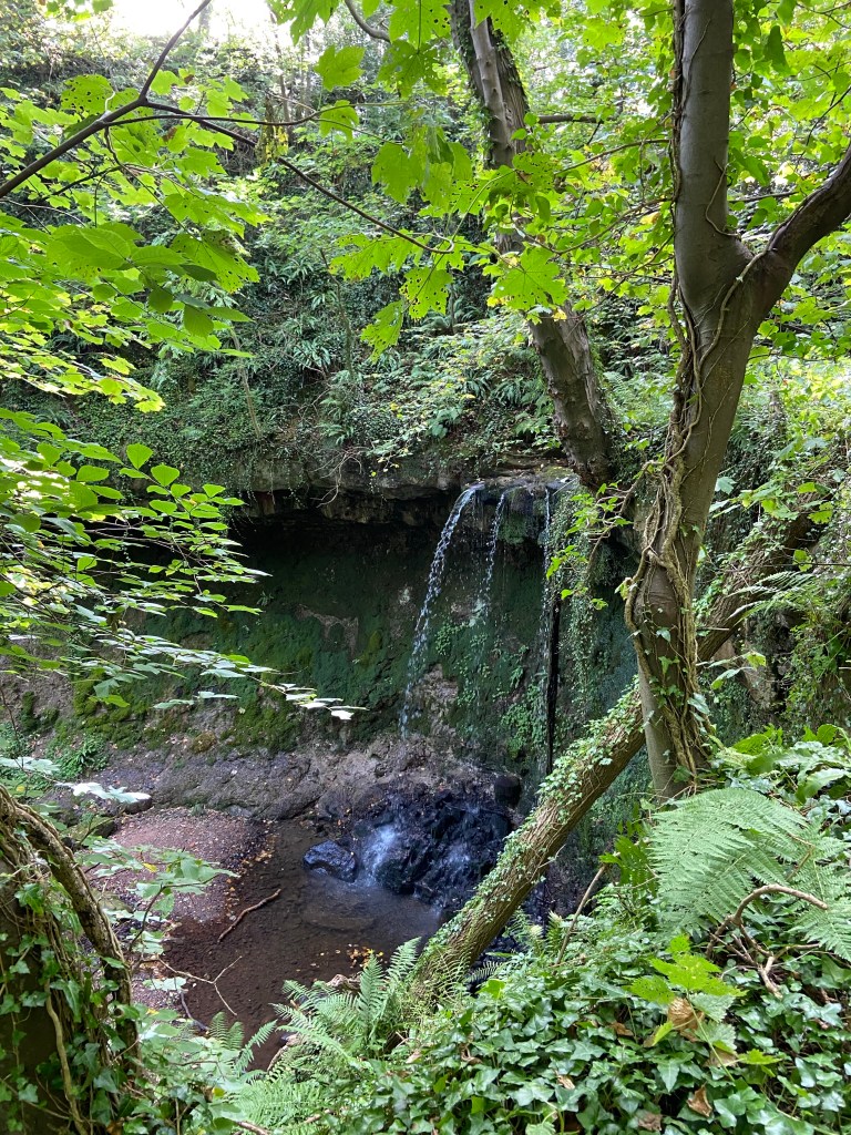 Another little dingle took me up onto the cliffs above the beach, past a burn whose water cascaded over moss-covered rocks in the other direction, heading away from me towards the sea.