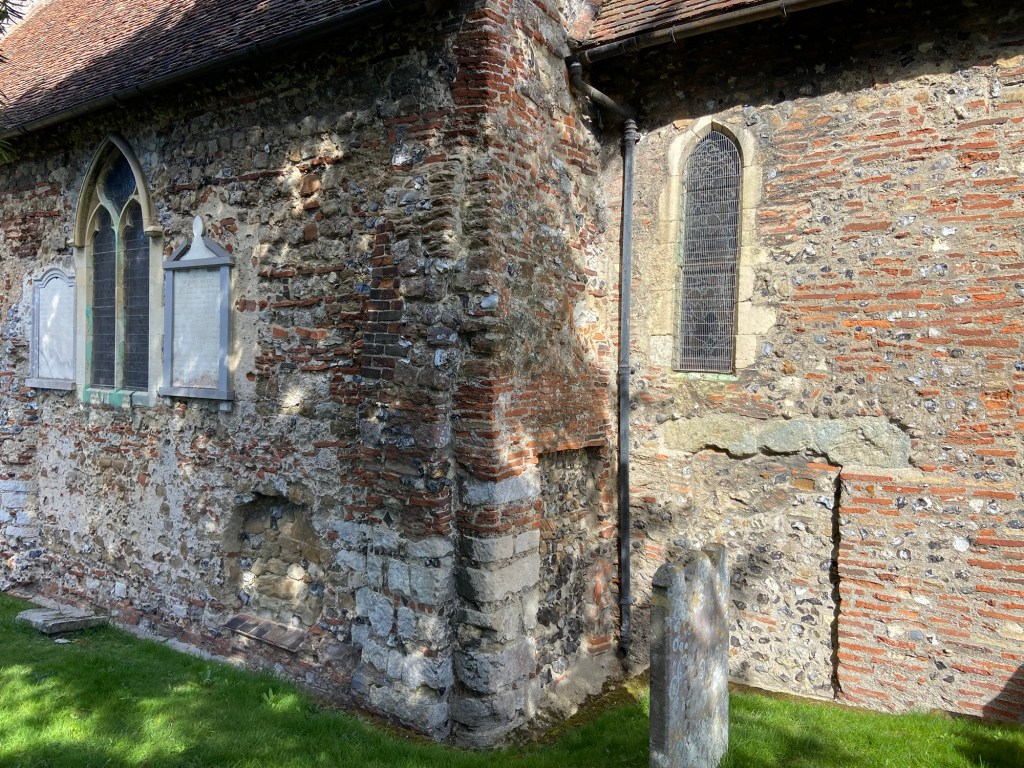 It is older even than the Cathedral, being founded during the Roman occupation, and successive phases of building were visible in the walls as we circumnavigated the outside of the church, from the narrow horizontal Roman brickwork (300s) to the Saxon flint (600s), from 12th century extensions to the 14th century tower.