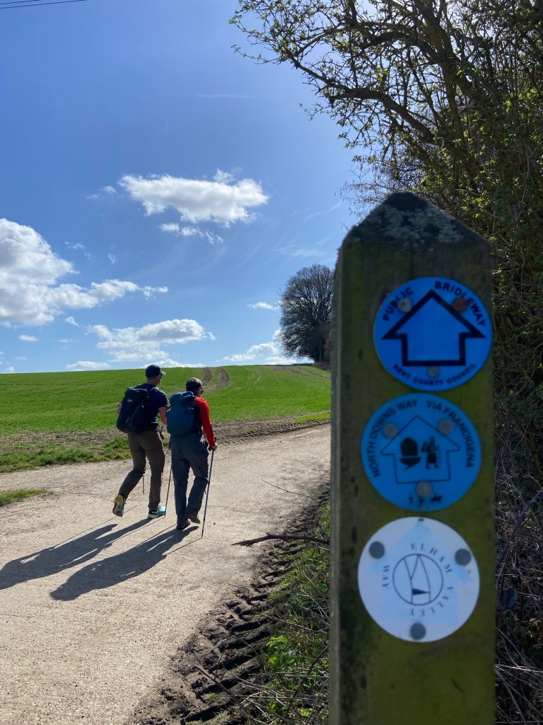 We struck out immediately across the country roads and tracks of the Via Francigena, following here the North Downs Way over the chalk, flint and chert of wide-open arable fields, heading for Shepherdswell at day’s end, and Dover beyond.