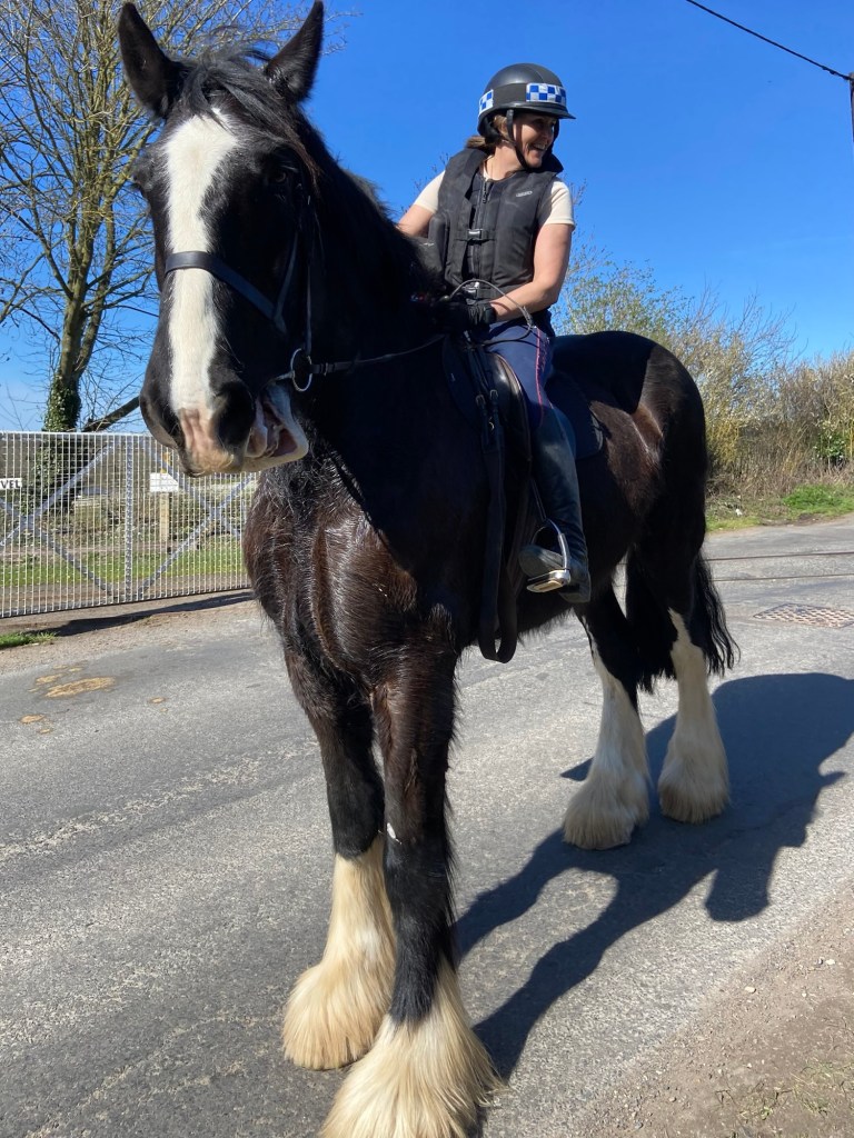 By 2pm we were on the outskirts of Shepherds well, welcomed by Jackie and her huge 12-yr old English shirehorse, 19-hands tall and about to embark on a dressage career. The long white hair on his giant hoofs as they preceded us up the North Downs Way were as massive as polar bear paws.
