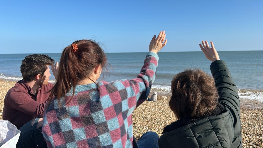 Just as we were leaving, a text arrived from Frances saying that they were down the coast in Hythe and fancied they could just see us in the very far distance. And so they were waving us off.