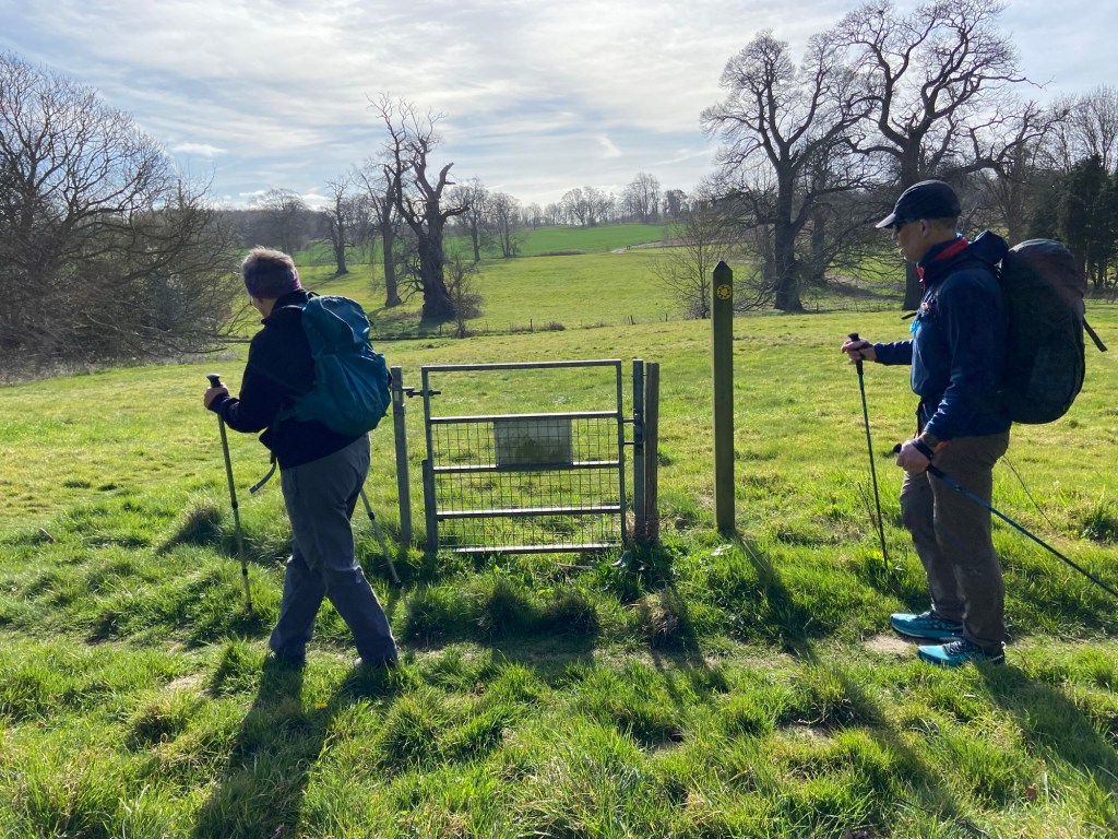 Frances also came with us for the first hour of today’s walk to Dover. We crossed a chain of vast undulating fields similar to yesterday’s, filled with millions of uniform wheat seedlings with their roots in the chalk, until we came to the parkland of the Waldenshare Park Estate. Here stood majestically twisted tree trunks (chestnut?), and a field gate that led nowhere