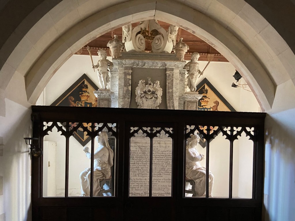 There followed a short walk through the Hornsby Groves, named after lover of trees and Maid of Kent Miss Mary Hornsby, in whose honour the Kent branch of the Men of the Trees replanted a section of the estate much damaged in the great storm of 1987 with 1237 saplings, including a small circular wood with the mildly amusing name of Piddling Coppice. On its other side was the disused Church of All Saints, an unassuming, pleasingly simple little structure, with the shocking exception of a chapel stuffed full of an overdone and disproportionate monument to members of the Monin and Furnese families.