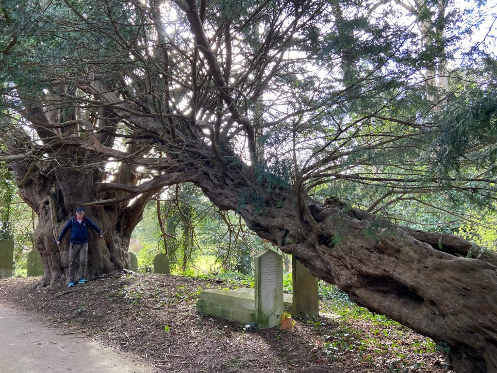 We chose the largest of these yews as the Parting Tree, our version of the Wordsworths’ Parting Stone (only I can confidently tell you, dear reader, that unlike brother John we have not been lost at sea because as I write this we are docking securely in Calais). It has been wonderful to start our walk with the company of Frances and her family — although it was not the last of them, as you shall hear.