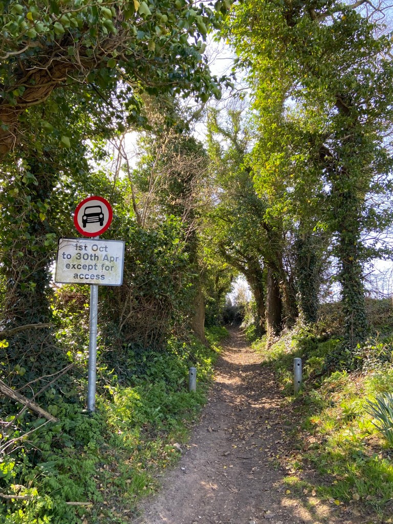 Less creepy was, paradoxically, the valley of the shadow of death which we passed through, in the form of the Charlton Cemetary. On either side of a steep coombe the monuments stood, nineteenth century figures to the west, amongst what would’ve been a riot of primroses, were this not a sober and respectful place. On the eastern slope the modern graves were spaced out and dotted about, just like houses in a landscape.
