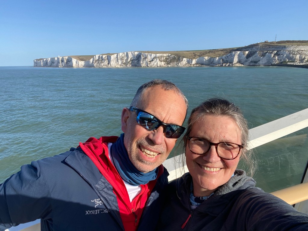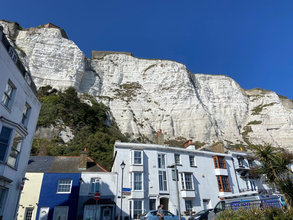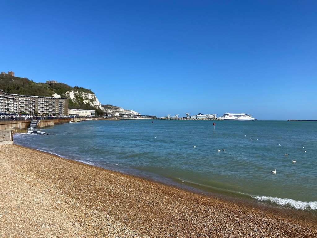 To the left in the distance were two huge cross channel ferries docked at the port, and, rising above them, the iconic white cliffs, shining positively blindingly in the sun.