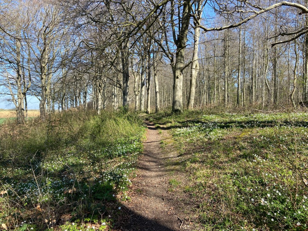 Dear reader, I apologise for having left you in the forest, but I hope you appreciated the birdsong while you waited. Here there were nuthatches, blackcaps and song thrushes to join the chorus of chiffchaff, robins and wrens — the silence of the great fields was a startling, and sad comparison. Our feet now crunched over beechmast and last year’s dry leaves, and every now and then we had to step aside to let a cyclist flash past.
