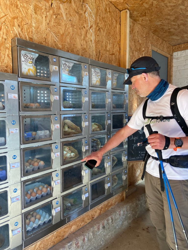 Delight followed on from delight, with the farm’s extensive vending machine which took up a whole wall of one farm building, in which you could buy the entirety of the farm’s edible produce (apart from beef): You could get eggs, garlic, haricot beans, apple juice, sausages, chicory, celeriac, leeks, carrots and onions, potato chips produced on the farm, and huge bags of potatoes and apples.