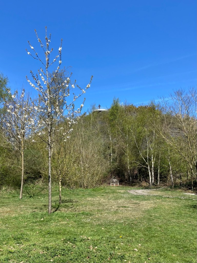 We encountered the first slag heap, a terril, which means that we are (temporarily, I think) moving out of the chalk and flint geology to a UNESCO world heritage site: the cultural landscape of the Nord-Pas-de-Calais Mining Basin.  It is a coal seam 120km long and only 12km wide, with the Belgian border on one side and the Artois hills on the other. The terril was almost perfectly conical, greening up with seeds blown in on the wind over the years — but also, as an information board told us, invasive species such as Cape groundsel from Sweden and even plants native to Australia. It is theorised that the seeds might have arrived via the sheep wool trade, or even on the boots and kit of Commonwealth troops stationed here during the world wars of the 20th century.