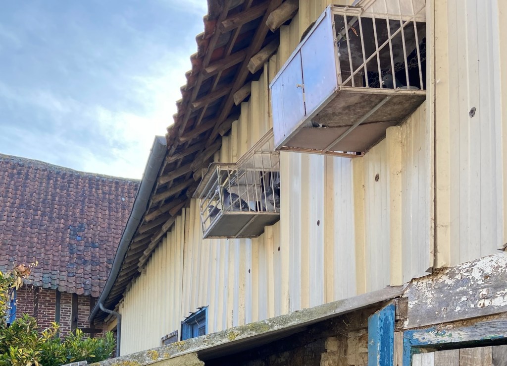 A more beautiful courtyard you couldn’t imagine, with lovely old beams, flowerbeds with grape hyacinth echoing the bright blue painted doors and shutters, a bench in the sun for weary pilgrims, and, extraordinarily, a loft full of racing pigeons!