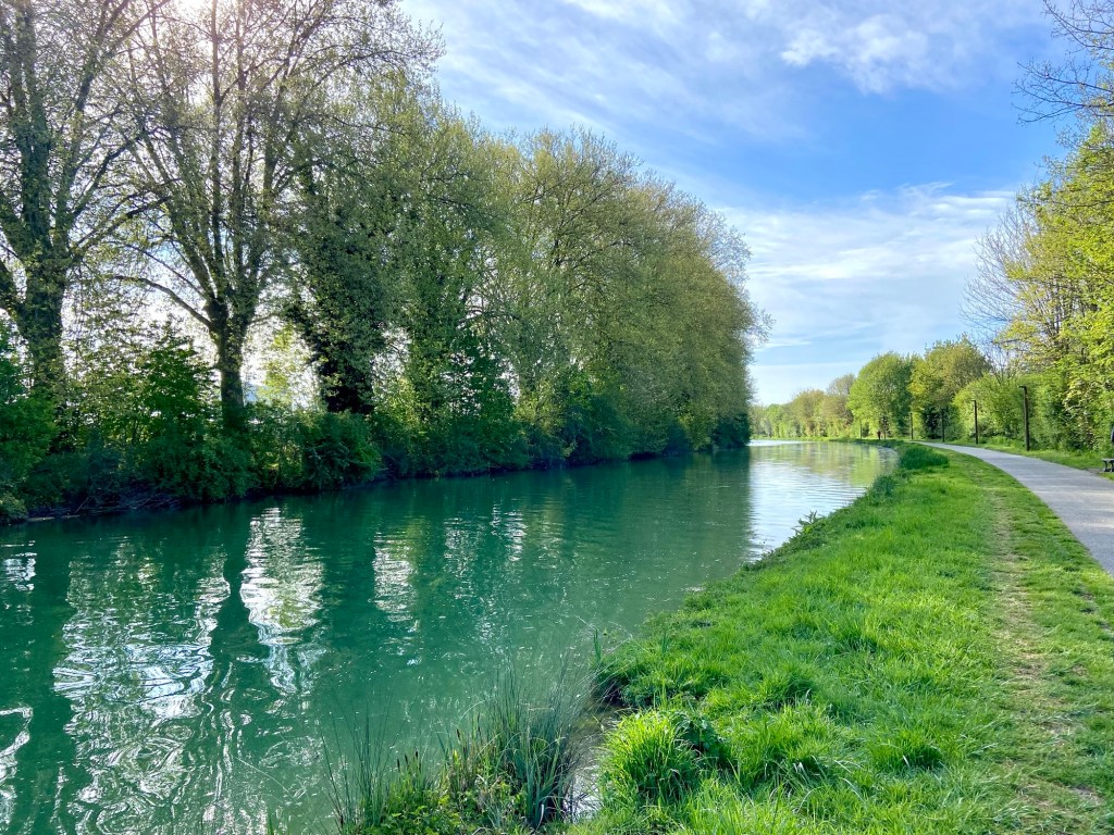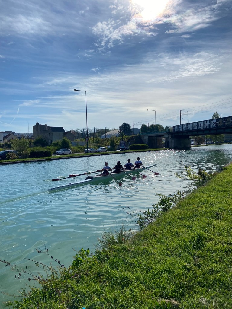 Being a beautiful Saturday all the burghers of modern-day Reims were, like us, out on the canal or its towpath, rowing in unison on the sparkling water,