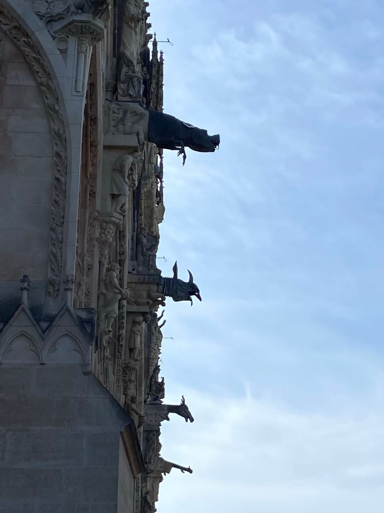 Happy Easter Sophie! Like you, I’m not religious, but there’s something uplifting and inspiring about the vastness and coloured glazing of a cathedral. I love a gargoyle too! Think about Terry Pratchett’s stone gargoyles who have to talk with their mouths’ open: I imagine them speaking French would be a challenge! Very impressed with the size of the glasses of Veurve…none of that flute size nonsense ha ha!