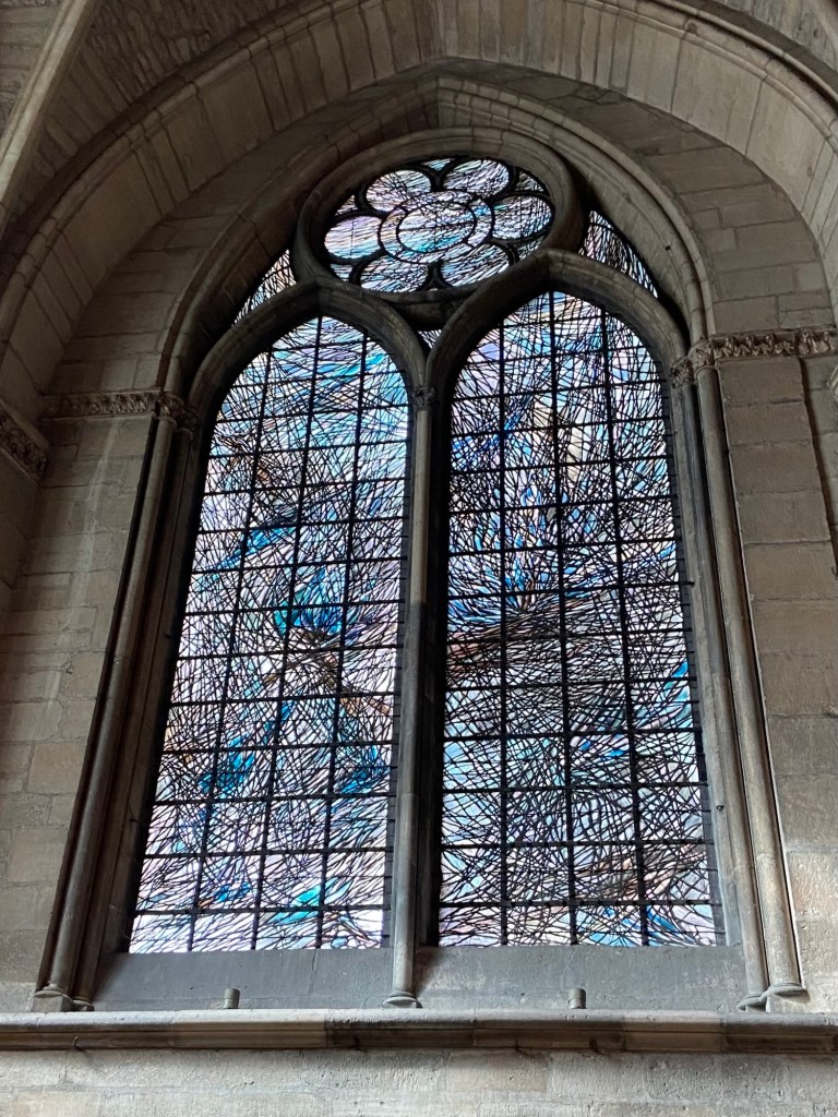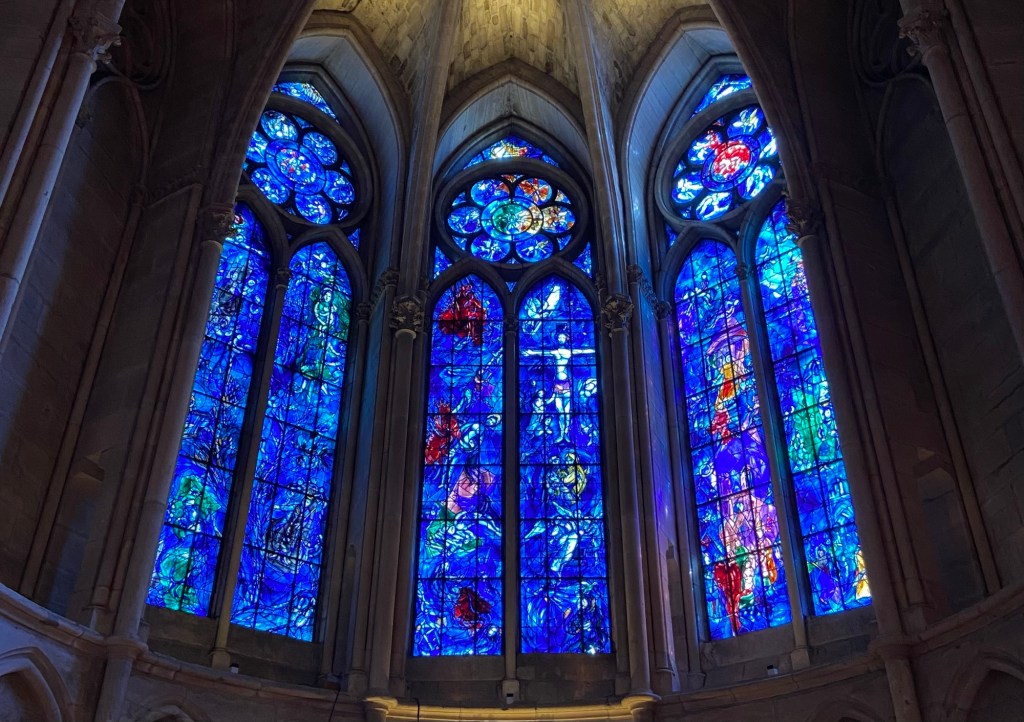 Best of all, a gift of light, were the Chagall windows in an axial chapel at the east end. His drifting figures emerging and taking form from clouds of swirling colours will remain one of my most vivid memories of the day.