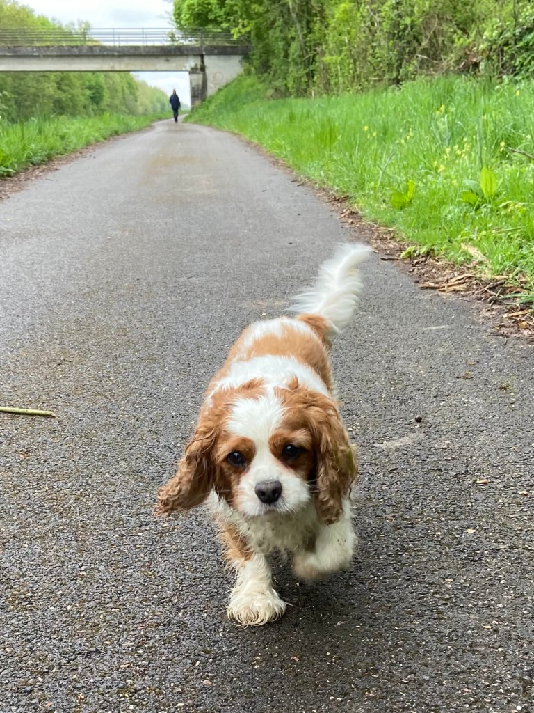 Even in the rain the canal path was not empty.   This friendly fellow came to meet us. His name was Newton, and the portentous name reminded me of Nestor the pug whom I had met in the heat on my way to St Thierry.