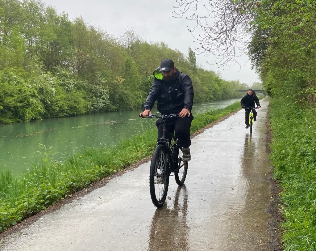 Two wet men and a defeated lad came along sometime afterwards, all looking depressed and absolutely sodden.  However wet we were, we agreed smugly, at least we weren’t cycling in the rain.