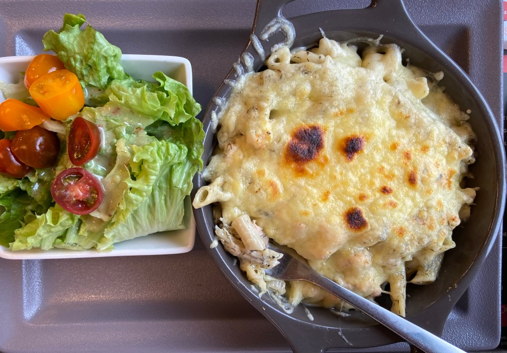 Dealing with all of that could wait. For now it was a hot chocolate and a salmon pasta bake and salad.