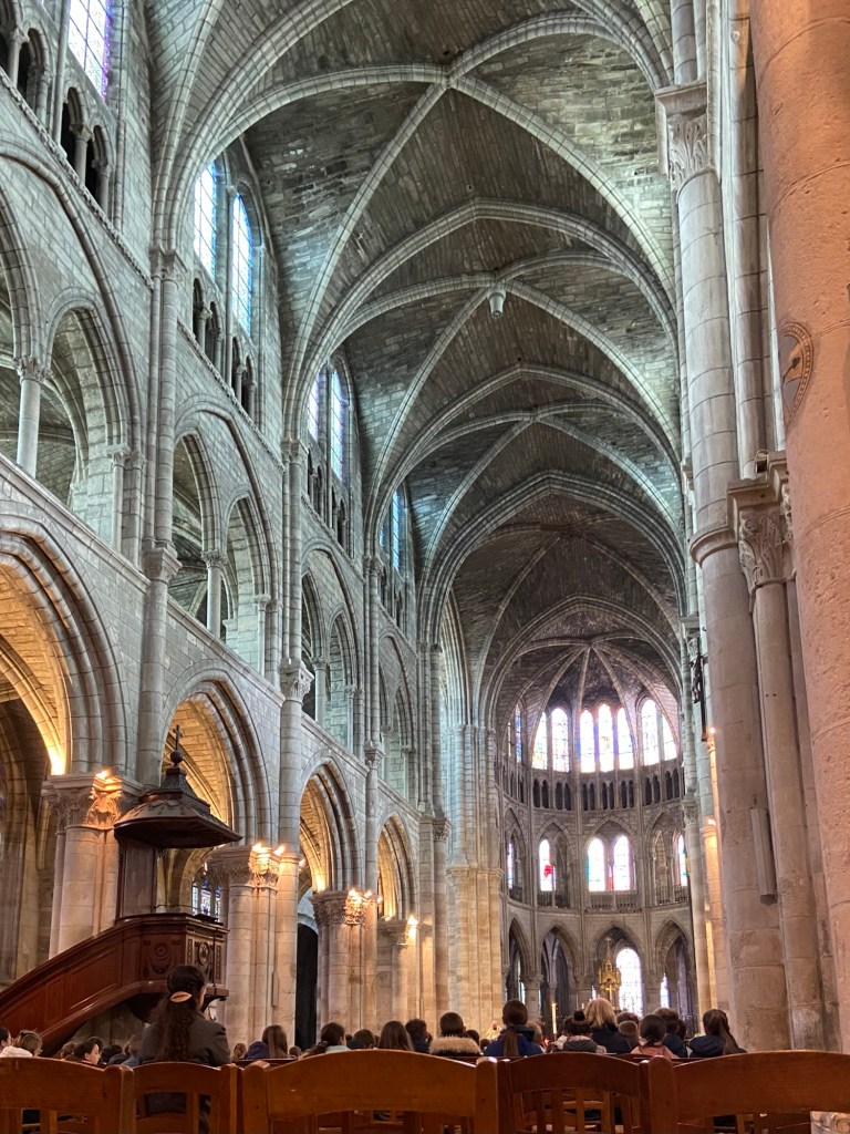 There was a service in progress. The church was full of school children chaperoned by their teachers and sitting through what seemed to be a kind of educational service about Easter. The particular focus was baptism, and some of the children who had been baptised on Easter Day were called up to the front. I crept to the back and sat quietly, taking in the interior. And also wondering in what context a school in France’s determinedly secular Republic might take pupils into a Catholic Church service for the purposes of religious education.