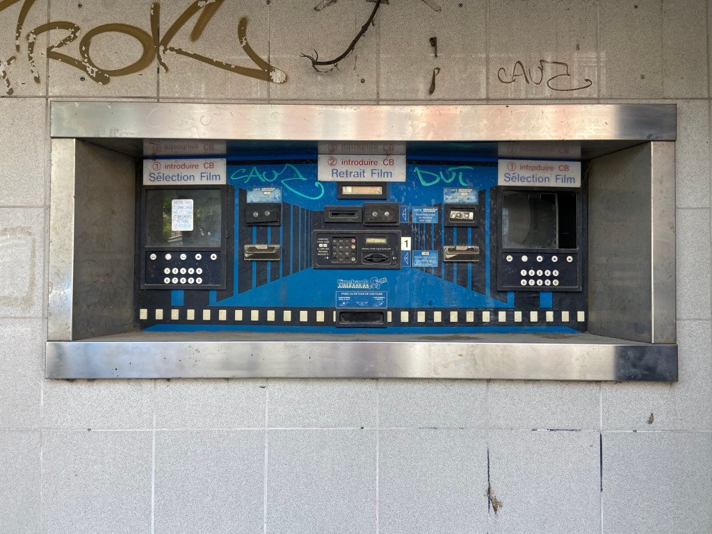 Emerging into the sun, I found a more recent relic of city life: a vintage hole-in-the-wall video and dvd dispenser along the lines of a jukebox.