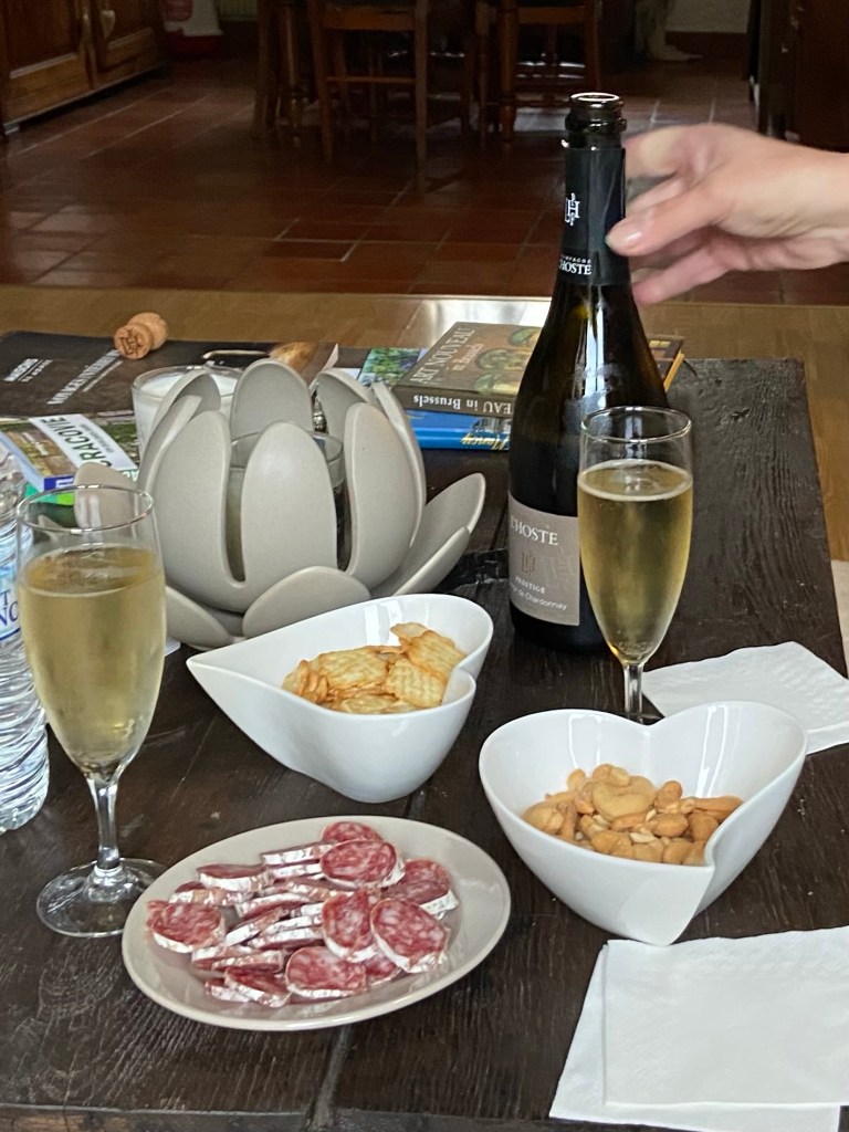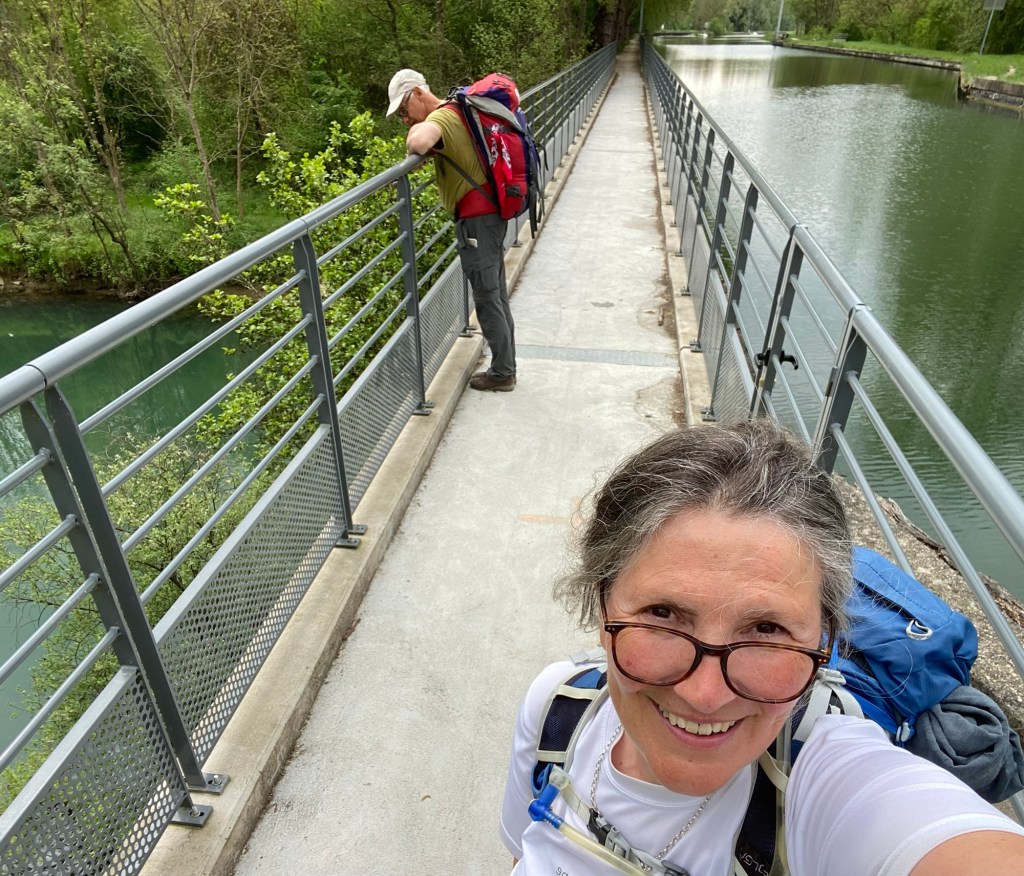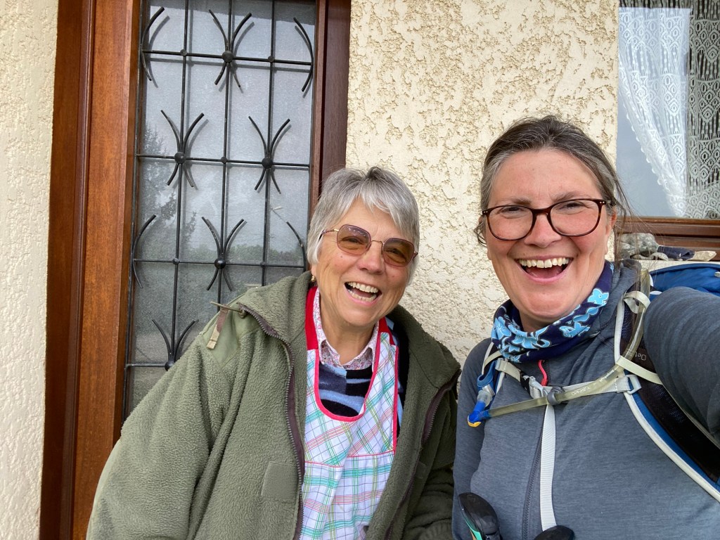 It was another thank you this morning for yet another very kind host on this path. I’m constantly amazed at the number of people who are part of this network hosting pilgrims on the Via Francigena. Last night at the gîte I found in Mme Monique’s guest book the names of two pilgrims I have met who came here before me, Kate and Bryce, on the line above, and Ged, a friend of a friend who walked from Glasgow to Rome, and sat at this same table in August 2023.
