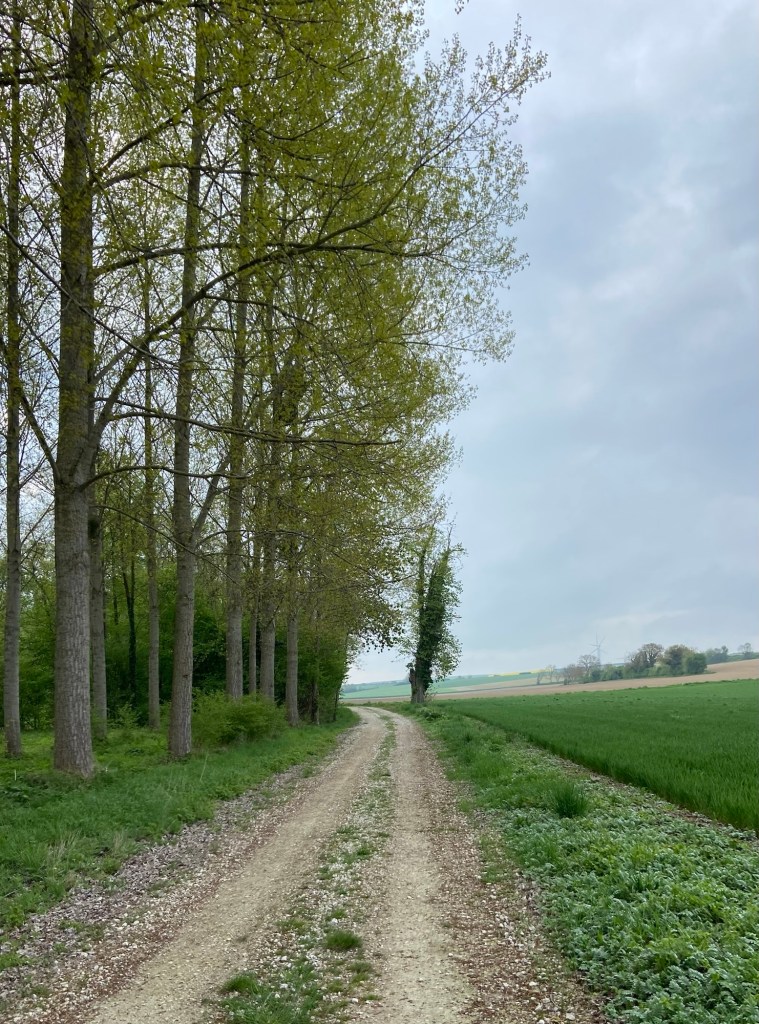 It took me a good amount of time to get my head into the game today, after a slightly chaotic evening and morning. But a meeting with Thierry and his hunting dog Sibelle put me back on the right path, so to speak. His clothing pronounced him to be a man of the land, so I asked him what he hunted: hare, was the answer, wild partridge, and roe deer, mostly. The dog had a beautiful soft mouth and was impeccably behaved. Thierry’s daughter had studied first in Maidstone and then up in Ledbury and Malvern, right next door to us! It was a small world. Why, he was almost an old friend! We agreed that it had been incredibly dry recently and he said, like madame Monique yesterday, but yes, the fields really needed the water here. They have a house in Spain and it had rained for the whole month of March out there. It’s so hard for farmers not being able to predict the weather.