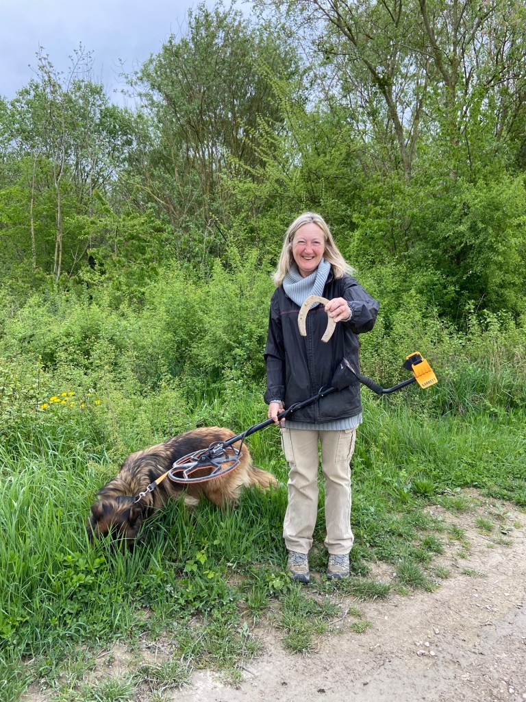 It’s a different kind of treasure of the landscape than the one this woman and her dog had discovered with their metal detector. ‘It brings good luck!’ she said, holding it upside down to British eyes. She often finds war-time waste like shrapnel in the fields. The real treasure hoard remains buried in the ground to be discovered on another day.