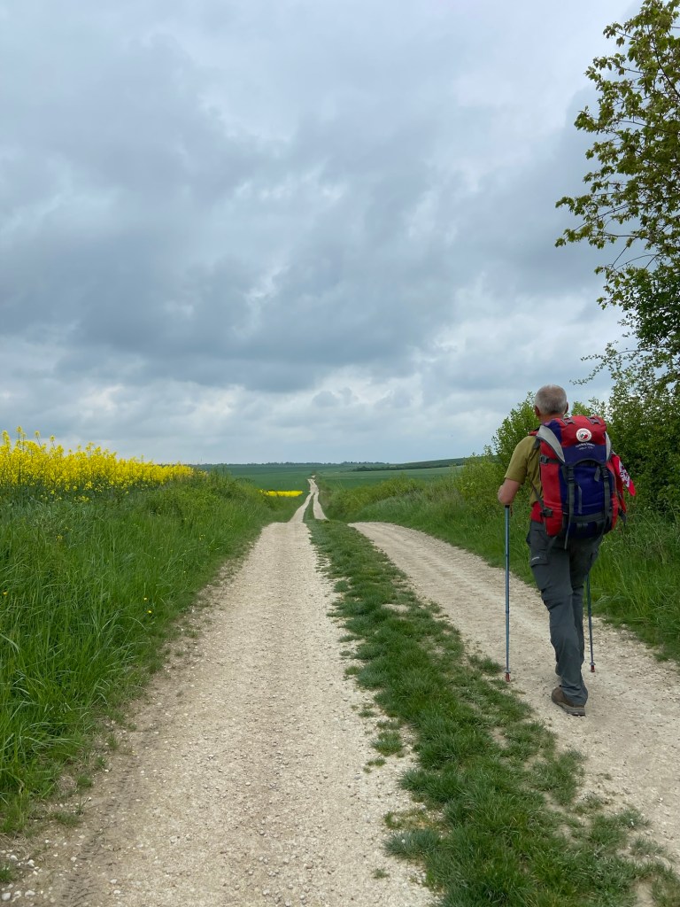 I texted Ian to find out how he was getting on, and got the reply back that he was in his gîte down the road, getting ready to leave. It was 11am — a very slow start! — but then I had already been on the road for two hours by that time. How unexpectedly fantastic: we could walk together to Vitry-le-Francois.