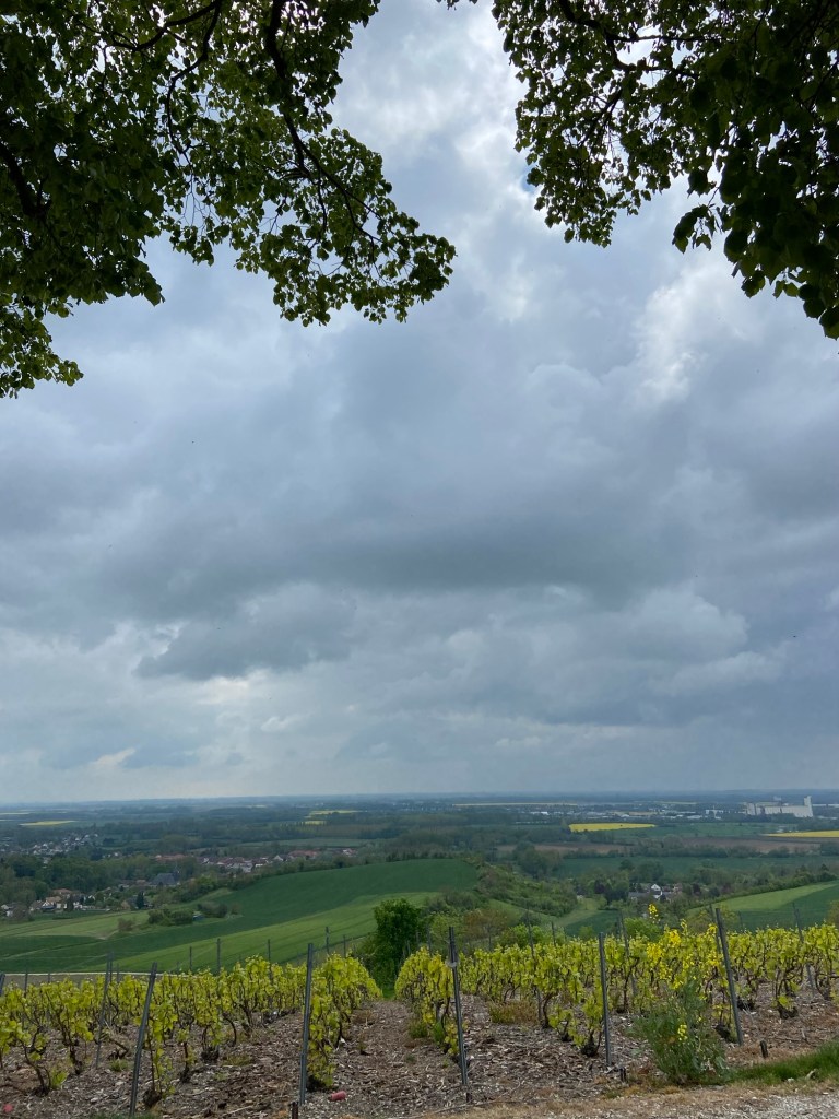 The hilltop views did not disappoint. There was Vitry, and overhead ‘enough blue sky to repair a Dutchman’s trousers’. The Dutchman sitting on the bench beside me having his lunch while I had mine was amused by the expression, and said their equivalent was ‘make a handkerchief’.