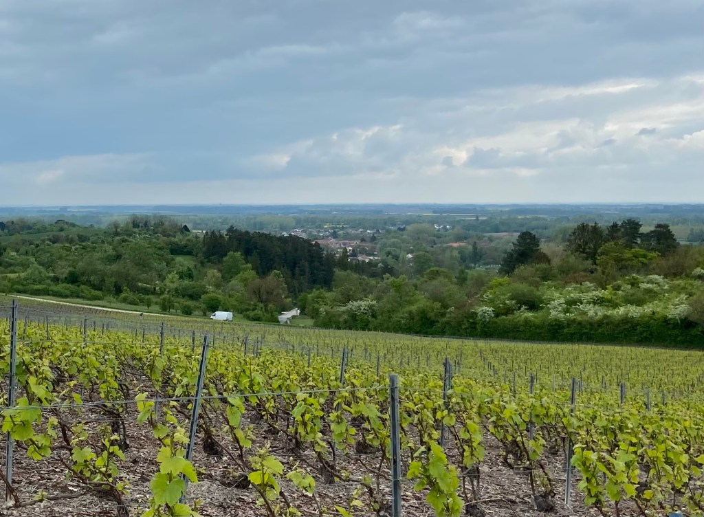 Down past the south-facing vineyards we walked, off Mont de la Forche and into the green wooded chalky hills we had seen from the top.