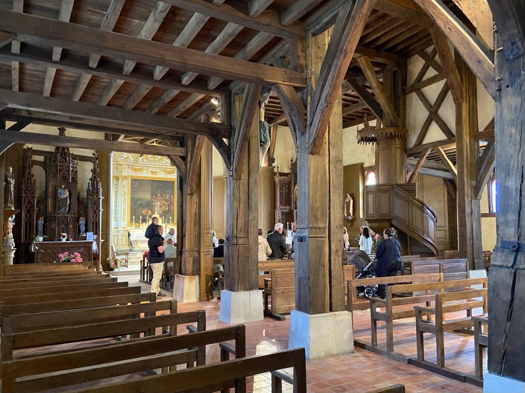 The day’s second wooden church was in Bailly-le-Franc.  The 1510 Church of the Exultation of the Holy Cross was also open (miracle!) and by the time I got there, I was so hot and sticky that the interior coolth (as mum would say) felt blissful.