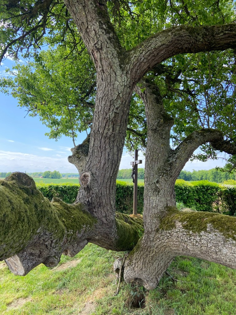 I did so at the first opportunity, where one of the roadside crucifixes, a Calvaire, had been raised under a shady tree. A check with the Merlin app confirmed that the large grey bird of prey I had seen quartering the cornfield on the lookout for small mammals or perhaps something larger, like a rabbit, had been a western marsh harrier. But it also threw up a surprise: somewhere, a little owl was also making its presence known. I checked carefully in the tree but couldn’t see one roosting.