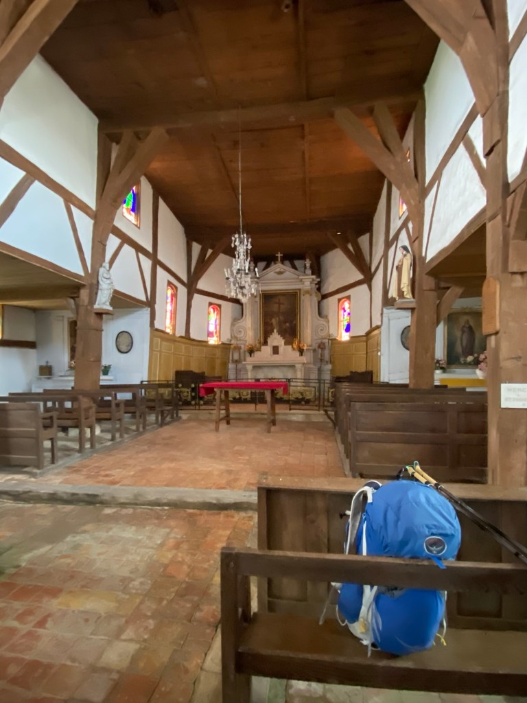 The village with the hilarious name of Lentilles was the final one today of the three with a half-timbered church. The Francigena took a sort of a shortcut down a field road, and from the end it didn’t look as though the village houses were very far. However, it was one of those roads which is in fact made of elastic, which together with the number of meanders made it take absolutely ages — almost an hour — to get there.