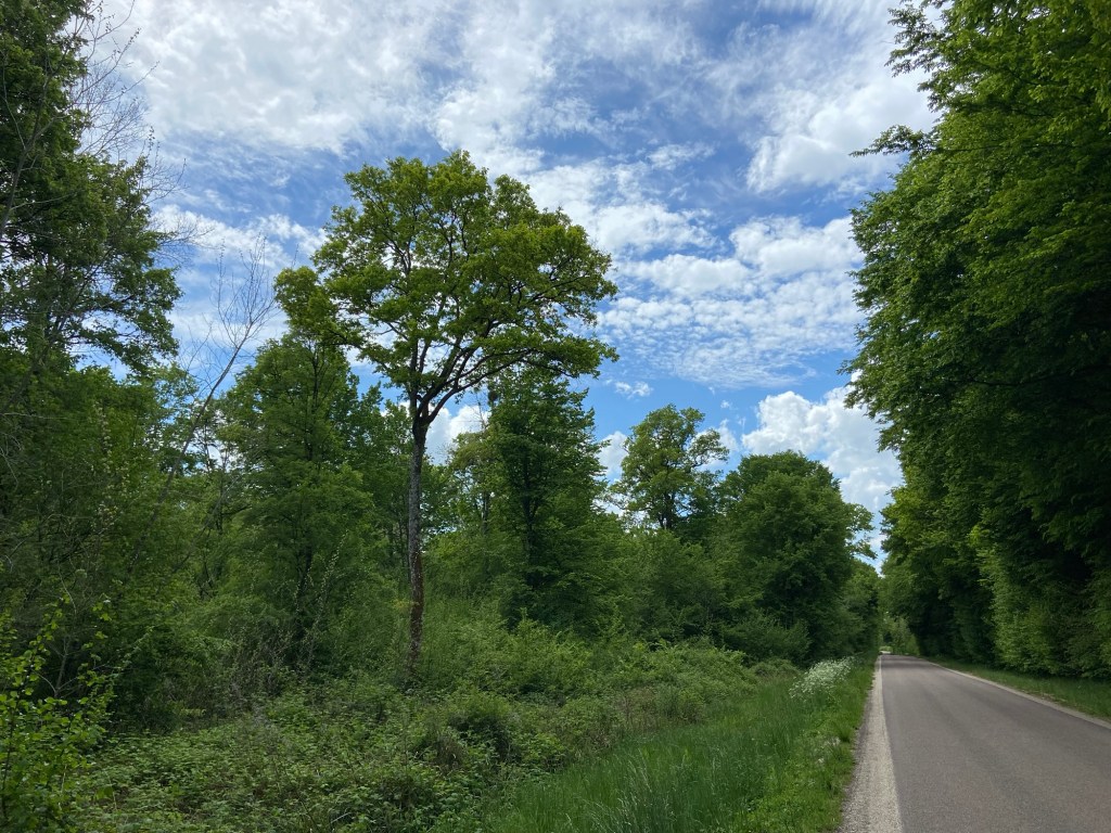 Now it was onto the third village, through another patch of woodland, still all on the road.