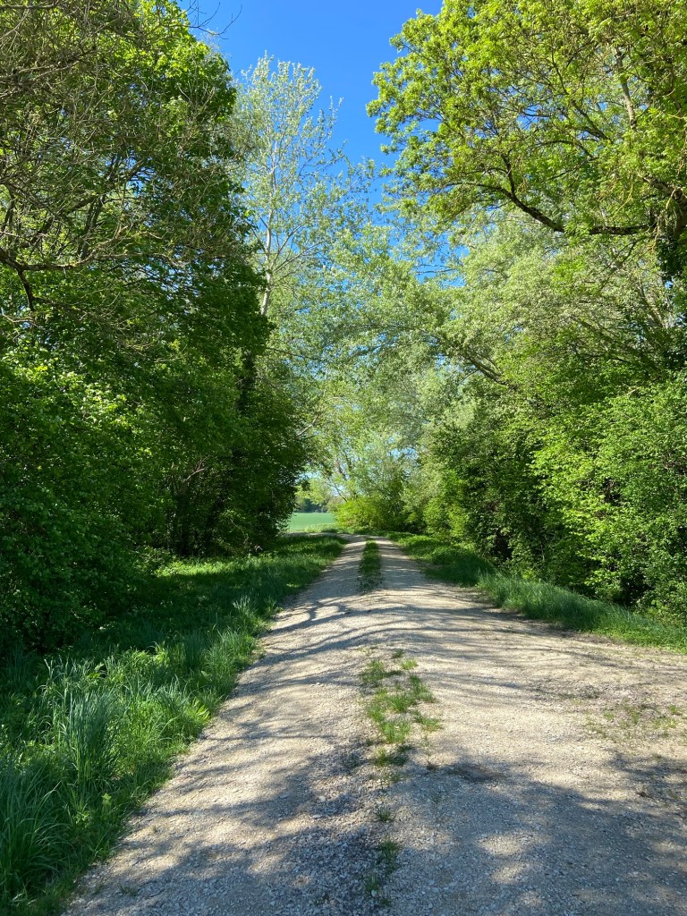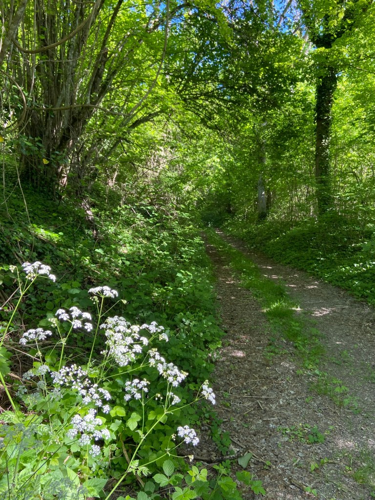 I made my way down a back road and out of this extraordinary little place, and just after the town boundary I heard yet another really thrilling bird: the golden oriole. It really is exceptionally golden: about the size of a blackbird or a jay and bright golden yellow. I didn’t see it, but it was glowing to itself somewhere in the thicket to the side of the road.